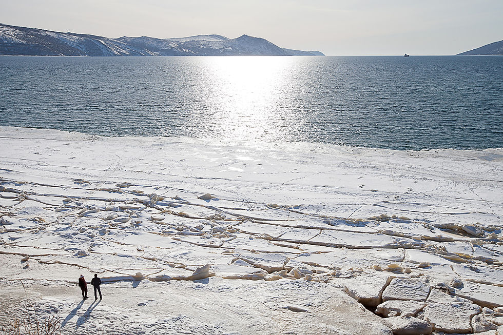 Magadan is the last city on the road of bones. It has a large bay to the Okhotsk sea. The entire bay freezes during winter months, but ice-breaker boats clear the ice, allowing ships to come in. The bay and its port was used to bring prisoners to the work camps and road construction
